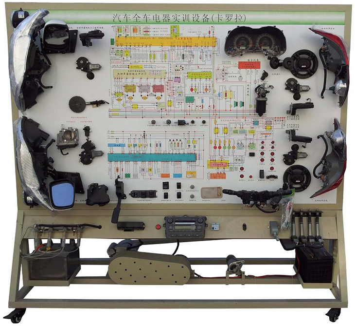 汽車電氣設(shè)備實(shí)訓(xùn)室。汽車電器設(shè)備實(shí)訓(xùn)室包含有汽車燈光系統(tǒng)、車載網(wǎng)絡(luò)系統(tǒng)、全車電器系統(tǒng)、汽車啟動(dòng)系統(tǒng)、汽車空調(diào)系統(tǒng)、全車線路試驗(yàn)臺(tái)、等實(shí)訓(xùn)教學(xué)設(shè)備。該實(shí)訓(xùn)室可以承擔(dān)《汽車構(gòu)造》、《汽車電器設(shè)備》、《汽車電控系統(tǒng)》、《汽車檢測與診斷》等課程的實(shí)踐教學(xué)任務(wù)?梢杂糜谘芯、分析全車電器系統(tǒng)、燈光系統(tǒng)、儀表系統(tǒng)等電器設(shè)備的電路及功能。利用這些系統(tǒng)進(jìn)行實(shí)踐教學(xué),使學(xué)生熟悉汽車電器的結(jié)構(gòu)和工作原理,掌握各個(gè)系統(tǒng)的基本組成電路,掌握主要電路的檢測方法和系統(tǒng)的故障特征,從而具有一定的檢測和調(diào)校能力。