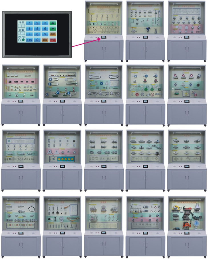 機(jī)械設(shè)計(jì)零件陳列柜,是根據(jù)機(jī)械設(shè)計(jì)(零件)課程基本要求設(shè)計(jì)制造的實(shí)驗(yàn)設(shè)備。陳列柜通過(guò)機(jī)械零件模型或?qū)嵨,配合相?yīng)的圖文資料,形象地展示與解說(shuō)機(jī)械設(shè)計(jì)的基本知識(shí),加強(qiáng)學(xué)生對(duì)通用機(jī)械零件的類型、結(jié)構(gòu)特點(diǎn)及其設(shè)計(jì)的感性認(rèn)知,為進(jìn)一步學(xué)習(xí)機(jī)械設(shè)計(jì)奠定基礎(chǔ)。